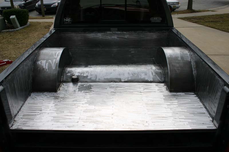 black headlights, shaved molding off rear bumper, sheetmetal bedfloor & sides, spray liner'd, color matched handles & cowl, tinted tails