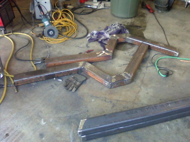 working on chevy front x-member crossmember, a-arms, etc. Rear has 1/2 ton chevy rearend and wishbone 3-link, gettin ready to install the JUICE