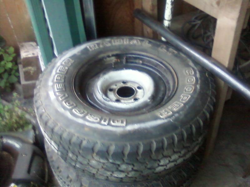 15" gmc steelies and a set of balloon tires... eventually 24's- or if i can ever afford them, 26's.