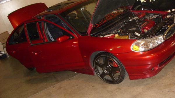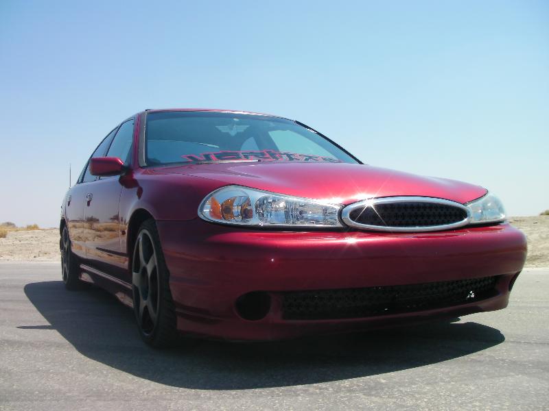 AVS Air Manifold, 3/8" valves, 5 gallon chrome tank, FBSS, 2 Viair 380's. Koni Struts w/ UAS strut bags, 10 switch, 3.0L Conversion w/ Turbo. Suicide rear doors, 7" flip out DVD, Full RF Componet set w/ Tweeters, 3 RF 12's 3 RF Amps. Shave Trunk Lid off of a 97 contour SE, Mirko Front lip, Headlight Eyelids...
