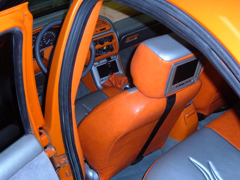 orange and silver leather seats, dyed dashboard