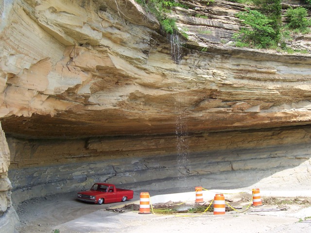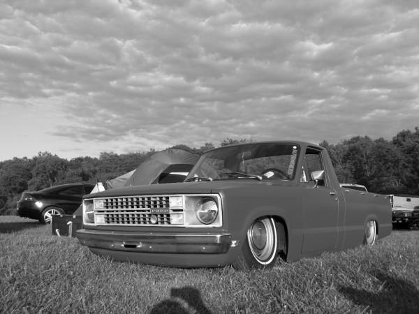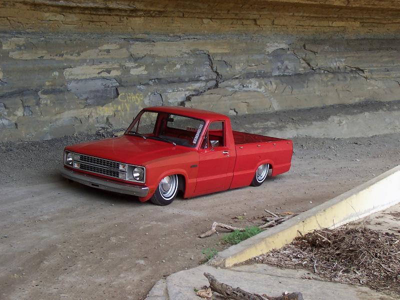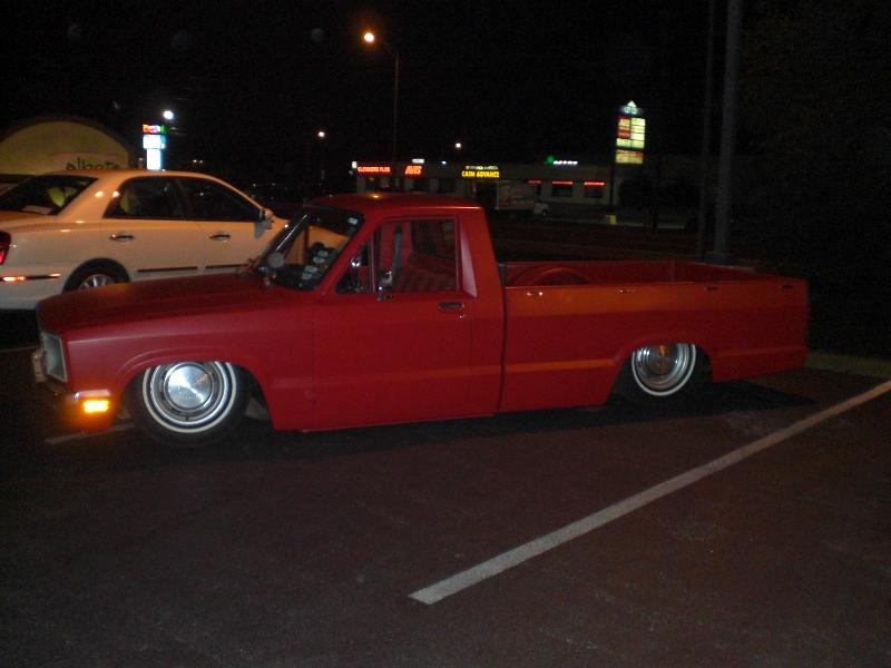shaved gas filler door and antenna and hood squiters, wheel tubs front and rear, new flat red paint job and matching red bed liner