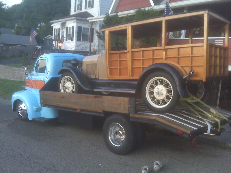 Cab was put on a late-model Chevy 1-ton frame. Body was dropped. Engine was relocated behind the cab in order to remove dog-box and create more interior room.