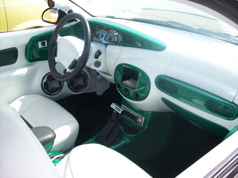 White interior with and green ostrich seats, fiber glass door panels Cyberdyne voltmeter, oil pressure gauges,