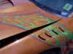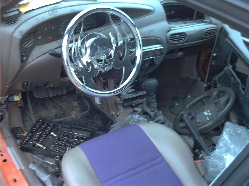 purple tweed and tan seats,fiberglassed trunk amp rack painted graphics down center console