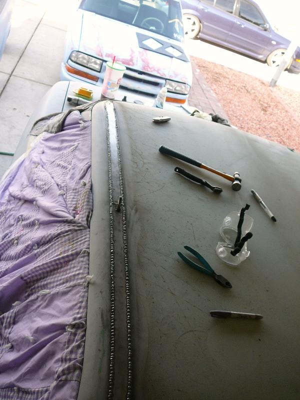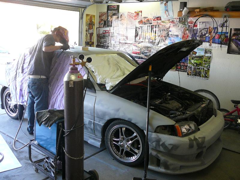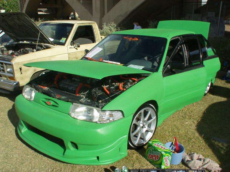 Shaved handels, Custom fitted bodykit, clear corners, green(now grey) primer. frenched R32 skyline Taillights. started 04' silverado headlight conversion.