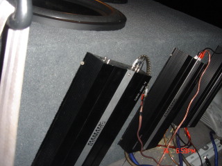 Kenwood Excelon 794 CD, Sundown audio sax-100.4 on 48 Powerbass 4xl's, 4 crescendo audio tweerers, 2 FI BL 18's loaded run off 2 strapped sundown audio saz-1500d's, all 1/0 gauge wire, powermaster d3100 in back