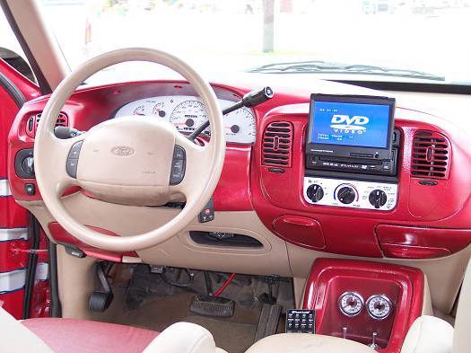 Tan and red seats and dash.