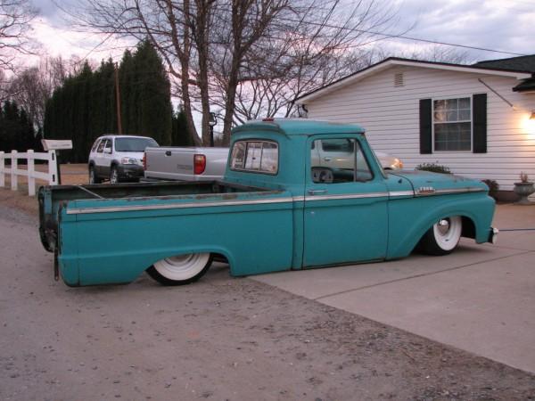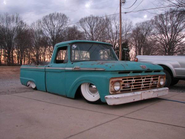Full Air ride.Full boxed frame from cab back, Fat man Fab Mustang 2 front clip, tubular a arms, drop spindles, Suicide doors parallel 4-link