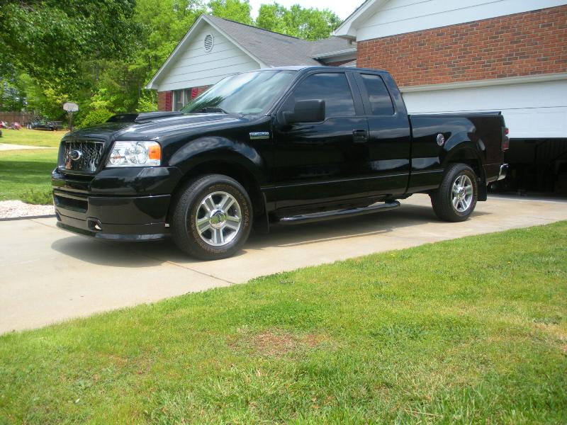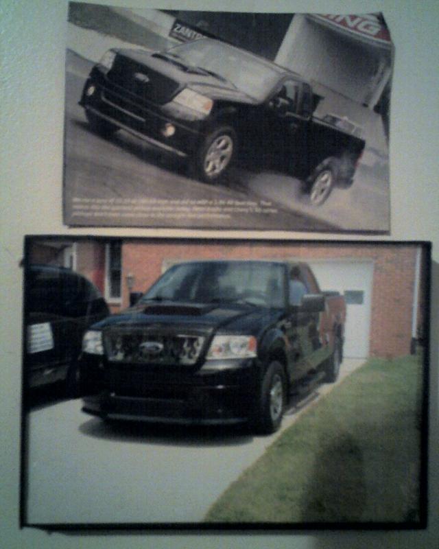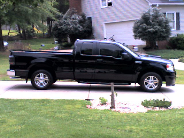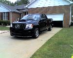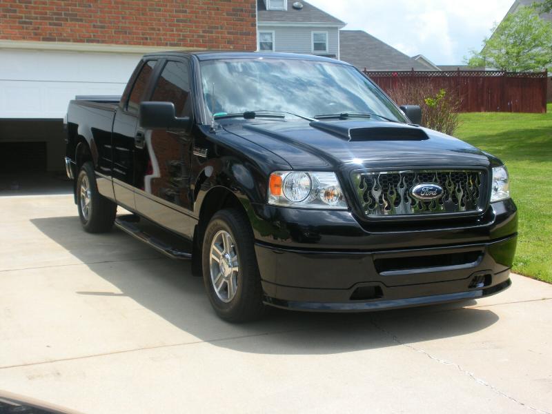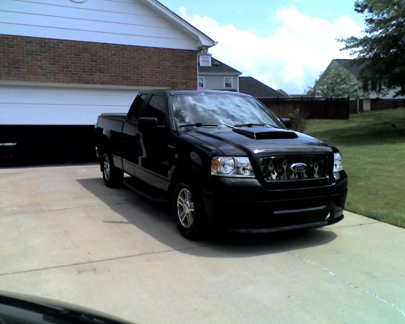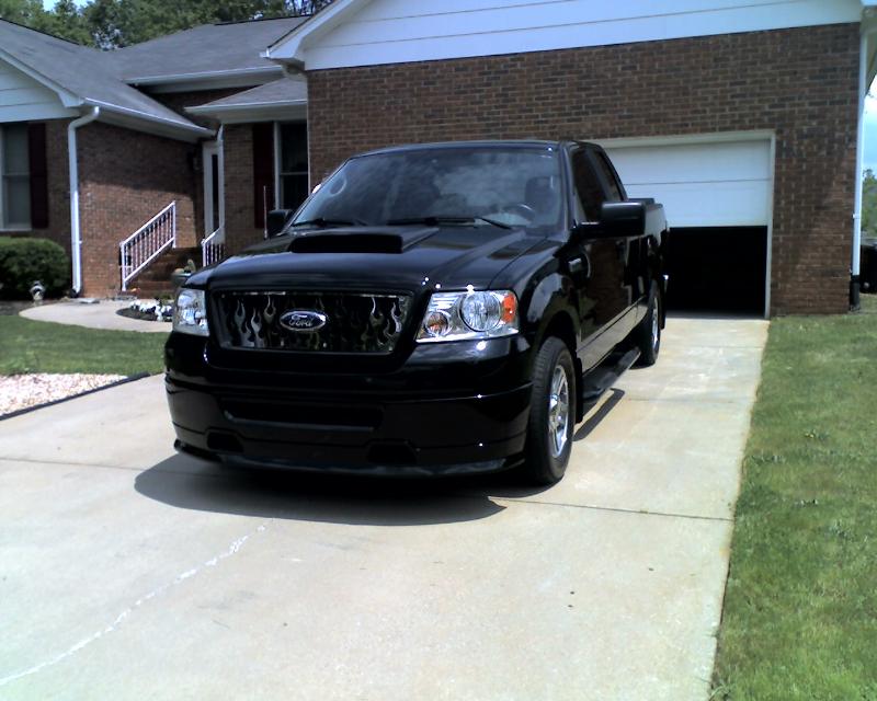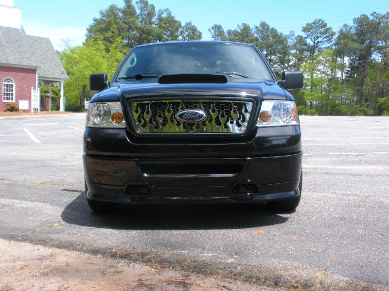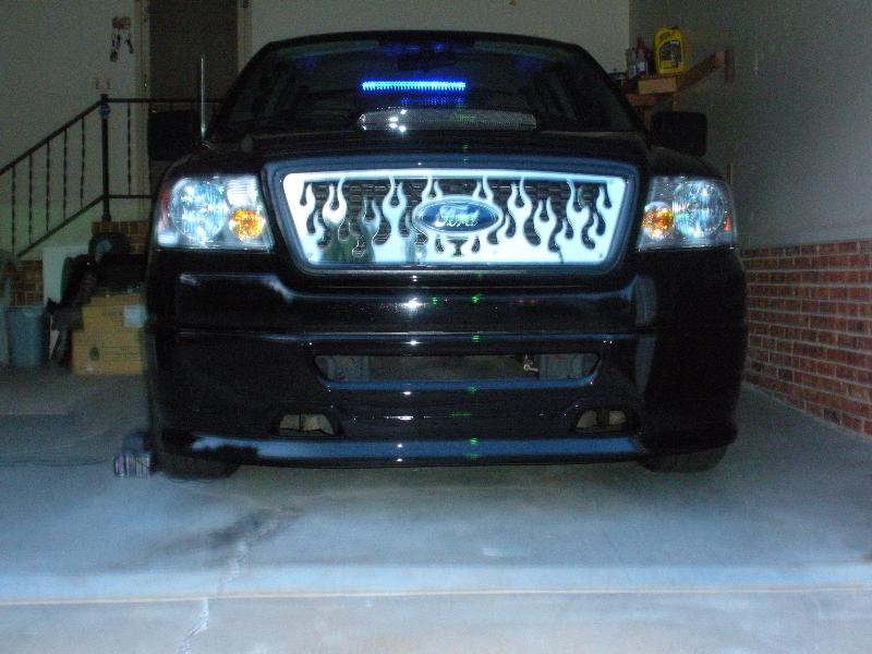 Roush chin spoiler, Roush hood scoop, Roush Tailgate spoiler, Black Nerf Bars, Husky molded mud flaps, 9" stubby antenna with flames etched in, Stainless flamed grill and stainless flames on tailgate. Stainless fuel door. Under truck neons (Blue)Black Altezza Tail lights. Full Tinted windows. Blue H.I.D head lamps, Bosch pivotless wiper blades