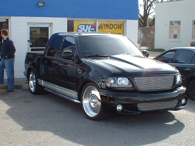 black headlights and marker lights, black billet ant, lightning l.e.d. 3rd brakelight,smoked taillights,harley stepbars,lightning front bumper with billet insert billet upper grill