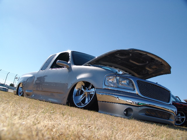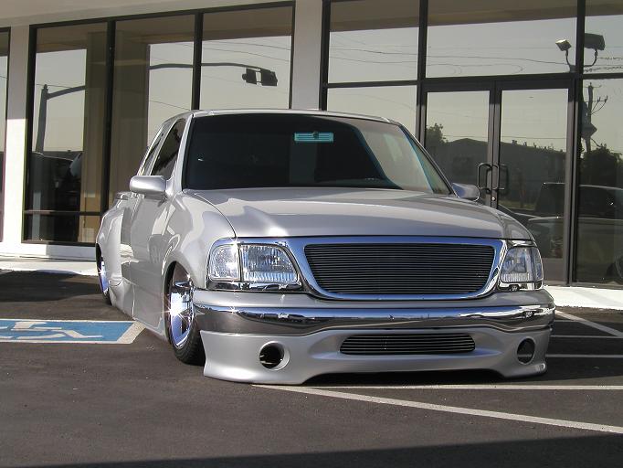 Shaved: Door handles,F150 side logos,Antena,Hood sprayers,compleet wiper crowl,(no wipers) tailgate, thrid break light, gas door tail lights now caddys..custom made roll pan, street scene mirrors, Harly lower valance, billet grills,dimond clear head lights and markers BED: molded every thing, look at the pic... Ect..Ect..Ect..Also one more thing, a 4.5" Stock floor body drop motha fuckaaaaaaa!