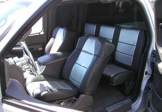 Painted expo center councle with air gauges glassed in to it, painted dash and door pieces, coustom billet parts by billet and acrylic, billet mirror and peddles. harrly davidson shift lever and door handles. apc gauges and I think thats it.