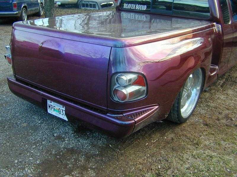 maroon, color change flames front and back, all shaved, grill, front valance, bed cover, tint