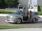 custom hood, flame graphics, tonneau, 20x9.5 budniks, custom headlight