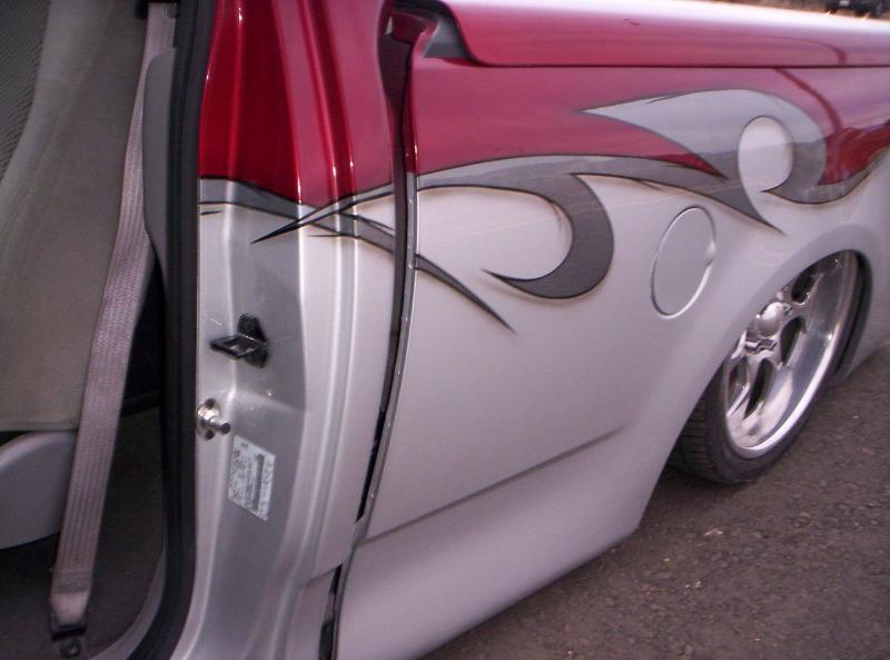stockfloored, fully shaved, euro tail lights coated with a dark red candy, clear coners clear headlights, and billet grill