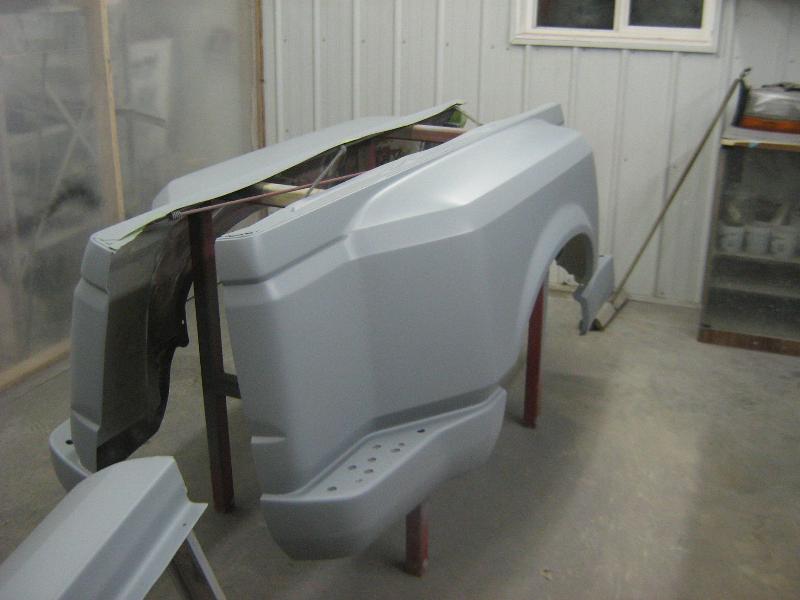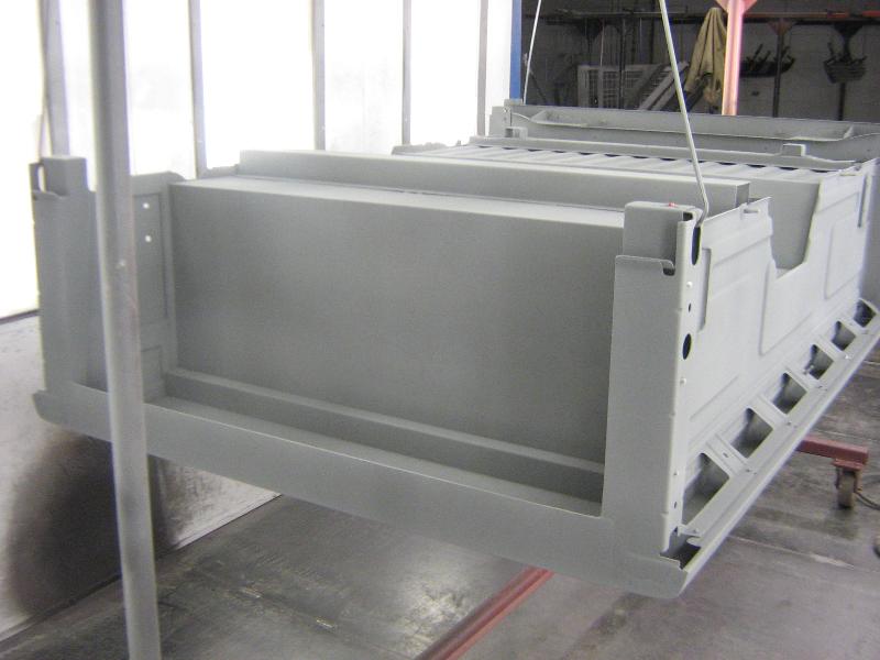 Her is the box with the first coat of Zich Rich Prime Powder on it getting ready to leave the booth and go into the oven.