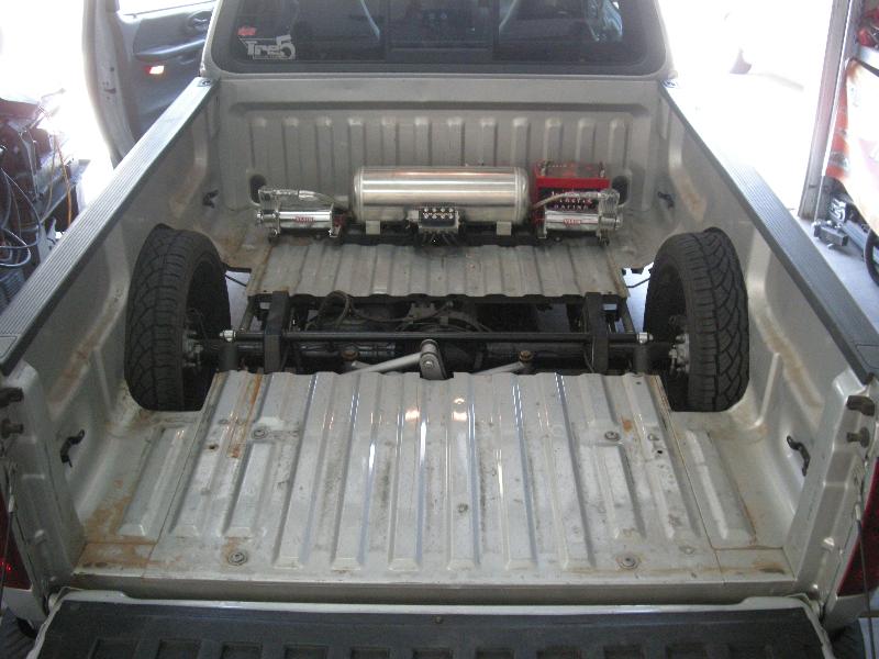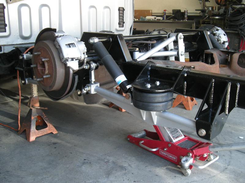 MMW front suspension kit. Upper and lower control arms with raised upper control arm mounts and new bag brackets. Rear end is a custom CAD designed parallel 4 link with a watts link and rear leverage bars for the bags and shocks.