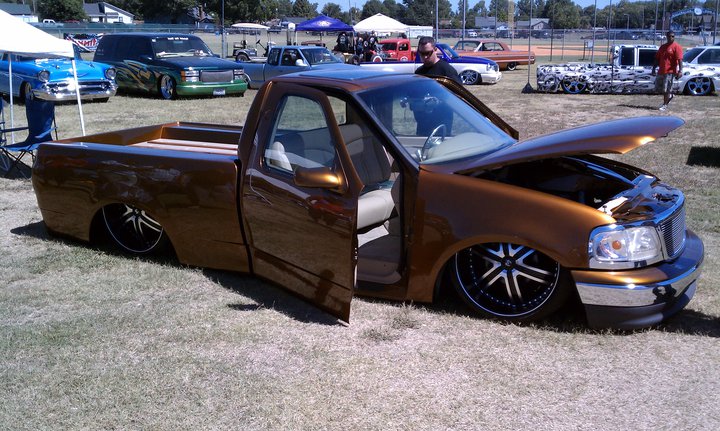 SHAVED EVERYTHING N SUICIDE DOORS, 61 unibody f100 tails, shaved bed caps, suicide doors...slick ass custom mixed paint by Keef @ Keef's Rod & Custom...Durant MS