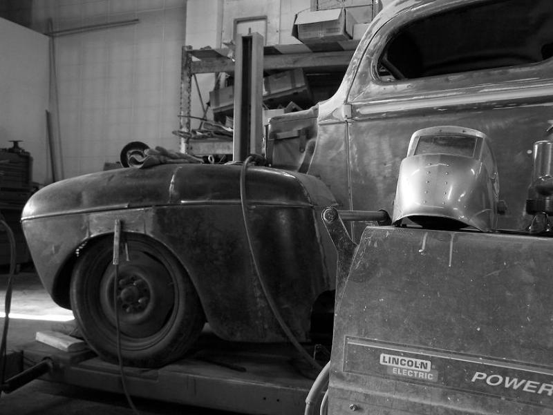 41 Merc car front fenders. 47 Ford pickup front fenders fliped on back. Cab chopped 5 inches.