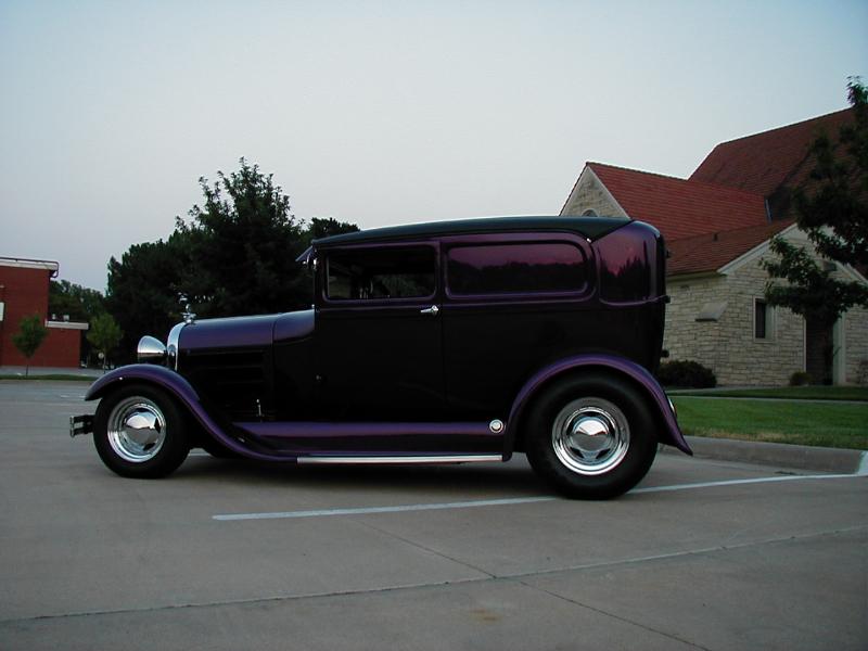 Steel Body.Pasion Plum Pearl paint with flame pinstriping. 3 inches taken out of the top. New wood and leather in roof. Fiberglass fenders and delivery door.