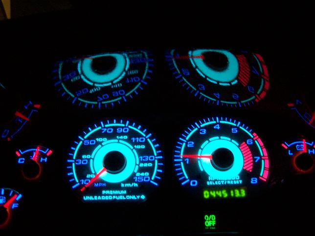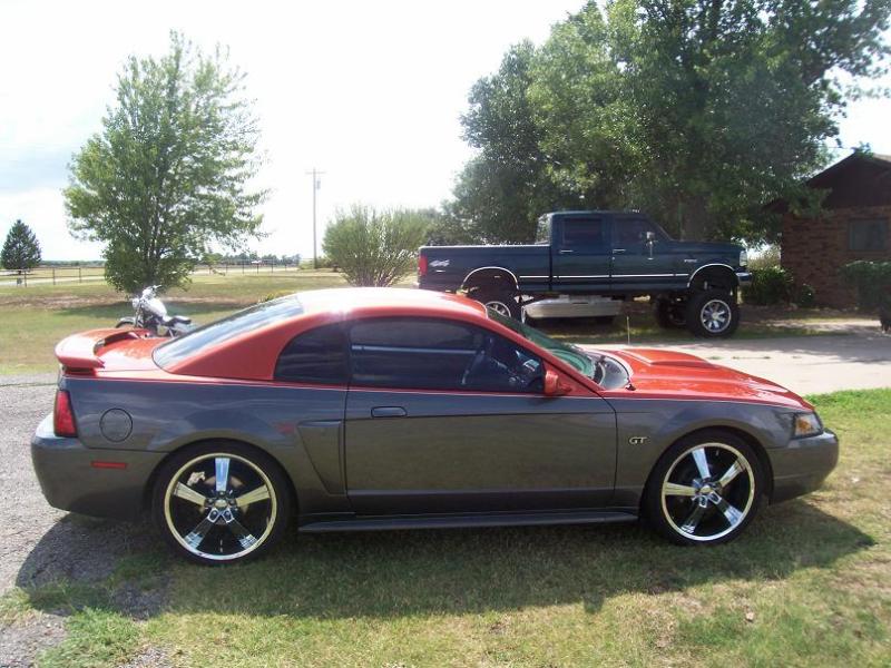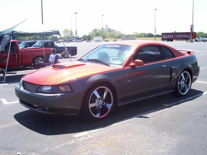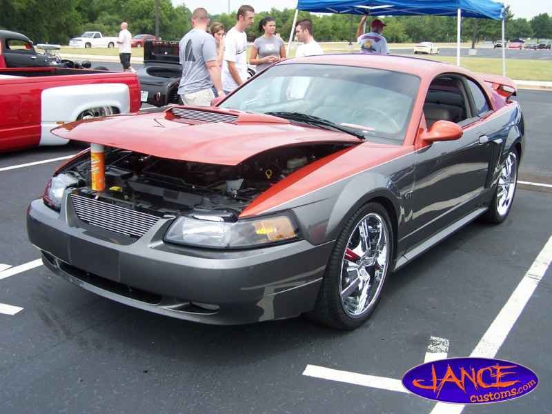two tone paint mazda orange and ford dark grey mettalic..billet grilles- one in hood scoop the other replaces the stock grile, billet anntena