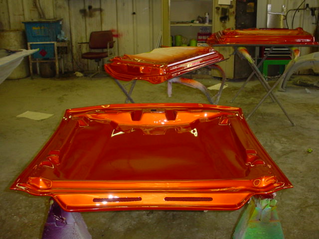 ppg tangerine pearl coat shaved all around decklid, handles, ant, emblems, euro tails , klear korners