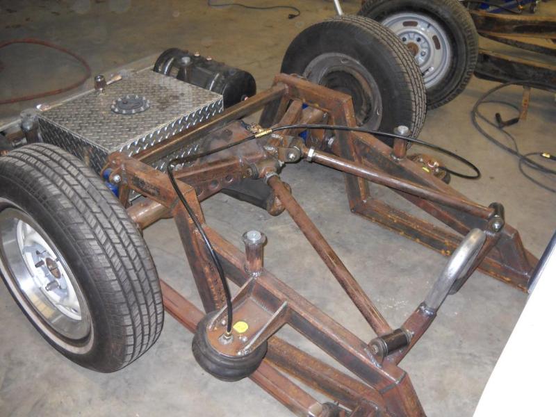 front bags on iBeams and triangulated 4-link bag on bar