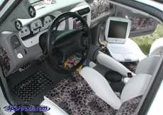 CRAWL THRU, LEAPORD DASH, HEADLINER, DOOR PANELS, ETC., CUSTOM LEAPORD FLAMES w/ WHITE VYNLY BED