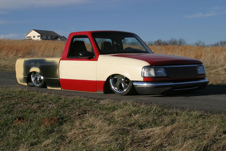 8 s.m.c's 3/8 dump,1/2 lift,all 1/2 line.2 450's 5 switchs,custom cross-members cant'i rev. set-up on the rear,pullin 12"s of lift..replaced front i-beams with '99 ranger IFS - new frame from firewall to rear of cab - front crossmember sectioned 2.5" - motor lowered 2.5"....5.75" total bodydrop