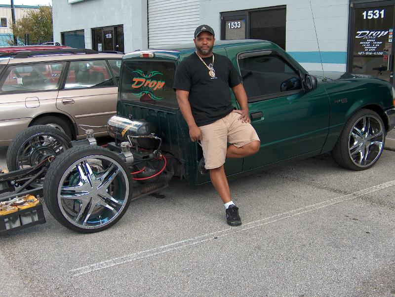 FBSS Have Slambags all the wat around- RE7 up front and RE8 in the rear... Custom Cantilever in the rear, Custom 3 link w/ Custom shackel, 2 Blow Jax compressors w/9 gal tank, Custom painted w/ the Juggernaut Air Brushed on tank....