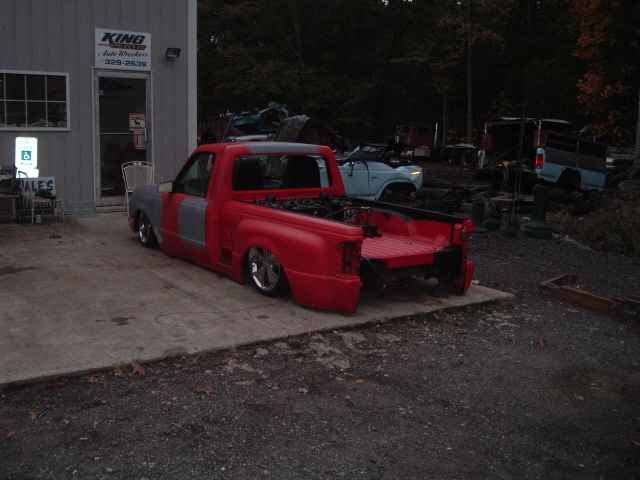 find a used tailgate cuz new is too much $ and shave it. put fbi roll pan on. 02 tails. chop camaro buckets, convert to 95 camaro electric fan, drive and drag it finally.
