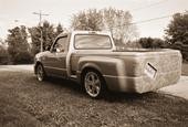Portofino Met. Blue paint, 18" Ultra Hott Shott wheels wrapped in Wanli rubber, Shaved ass-end w/ L.E.D.'s and krooked license tag <(no longer), in process of shavin' everything, Bumper cover, billet grille, clear corners.