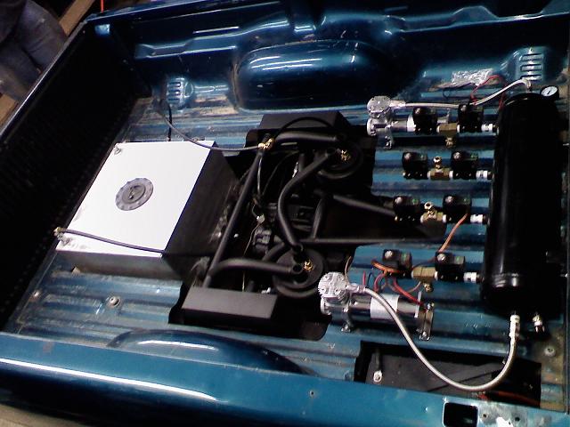 Front: slam re-6's on DJM dream beams. Rear: slam re-7's. 5 gal tank, 8 1/2" blitzluft valves, 1/2" line, Dual viair 480c compressors