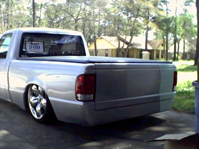 split color platnium silver and pastel green w/ purple pearl and graphics all shaved except tail lights and mirrors.extang bed cover