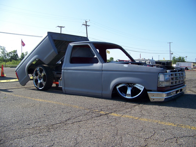 Shaved.... doors, cowl, gas door , full skin, 3rd brake, and other crap. Probably some stock tails. 2 tone paint scheme is set. Tilt bed.