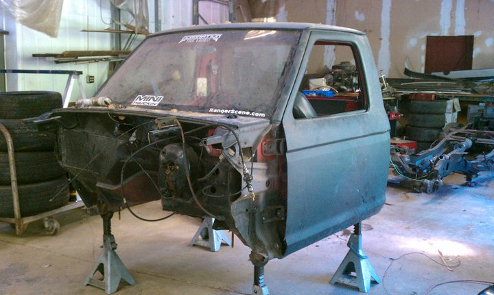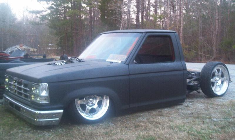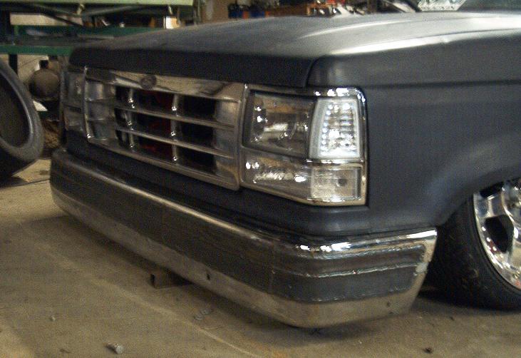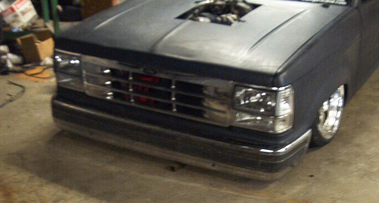 4 in body drop,89-92 front end,diamond clear headlights/corners, old school clear tails,acetoned explorer grill, shaved emblems, stake pocket holes,handles,wiper cowl, paint hopefully this winter,stock hood fits with the motor lowered 3 inches.