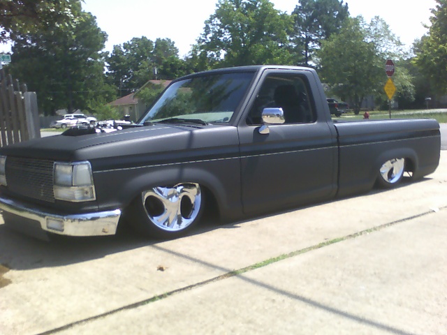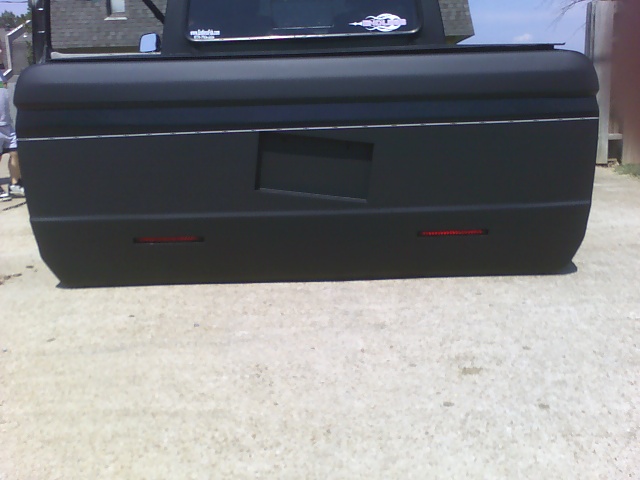 shaved:emblems,door handles,tailgate handle, keyholes,rear cargo light,tailights,stake holes,shaved cowl,cowl molded to fenders,fenders molded to rockers,radiused door corners,shaved rain gutters,shaved rear end with 8" l.e.d. tailights.polished billet grille,billet antenna,front clear lights,chrome Toyota front bumper & valance with billet insert,chrome Toyota mirrors, painted flat black. NOT PRIMER. with a black stripe (base coat clear coat)and a lot of metal flake.