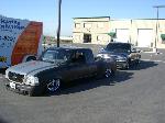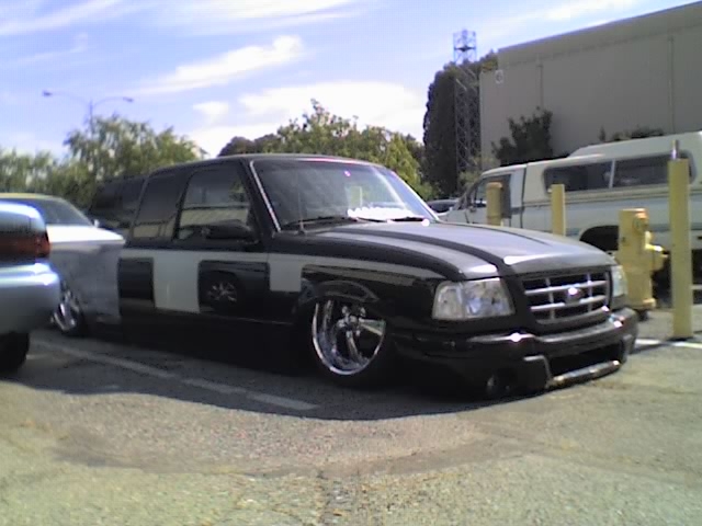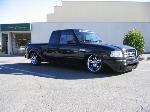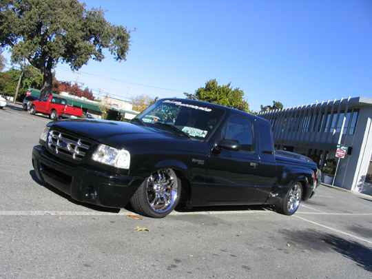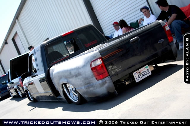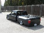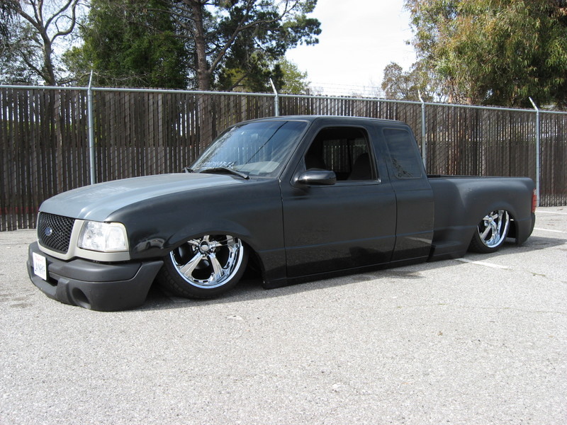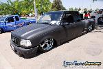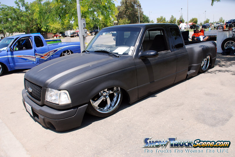 Eli @ Air Concepts Fab did a Stock Floor on a Powder coated frame. Raised bed sides, Sheeted bed, Shaved Handles, Grant Customs Roll pan, SS mirrors, clear corners, Edge Hoo, Bumper, and fog lights...Lots-A-shades of black!