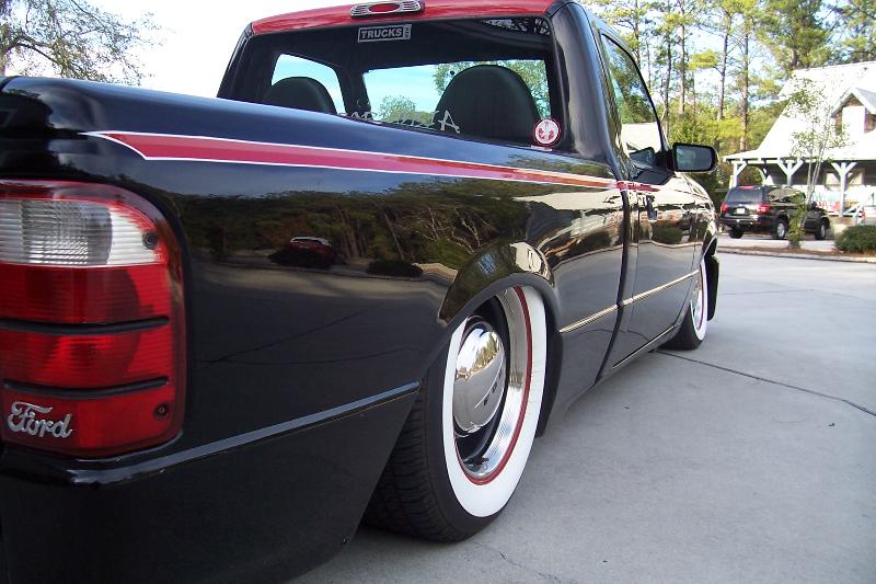 Full air ride suspension, Slam bags all the way with E valves. Custom triangulated 4-link in the rear.