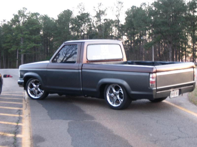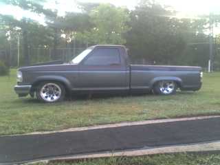 two toned black cherry and ford factory grey, euro taillights, blinkers, soft top bed cover, shaved doors, gas door, stake pockets, tailgate skin, cab seams, antenna, wiper cowl, exploder grille