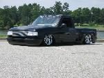 Black, with black primer spots,shaved tailgate handle, shaved third brake light, shaved door handles, shaved wiper cowl, shaved gas door, eclipse hood bubble turned around backwards, diamond clear corners and headlights with 8K HID's/ 2008 tail's