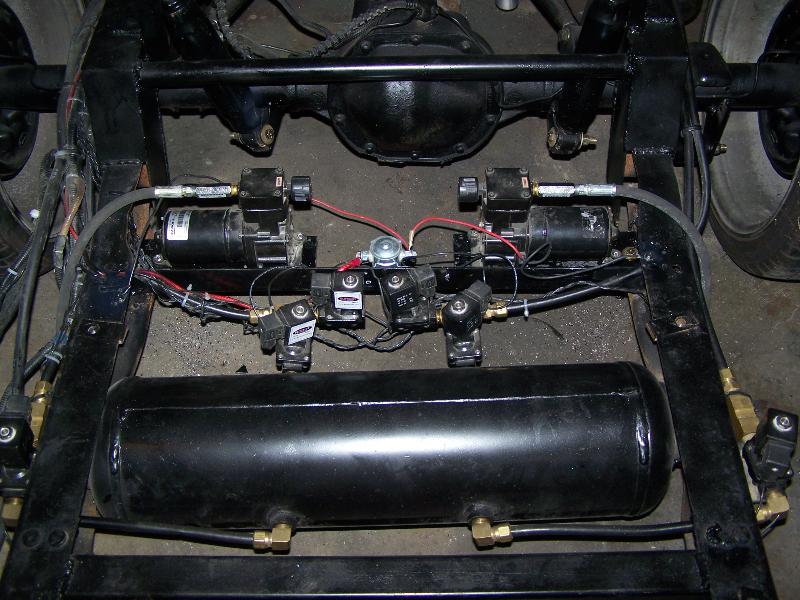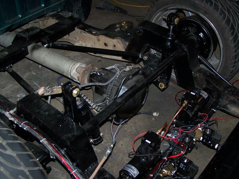 body dropped. z'ed frame fbi's fast bag kit with two viar 480's and a triangulated four link chassis tech lower control arms