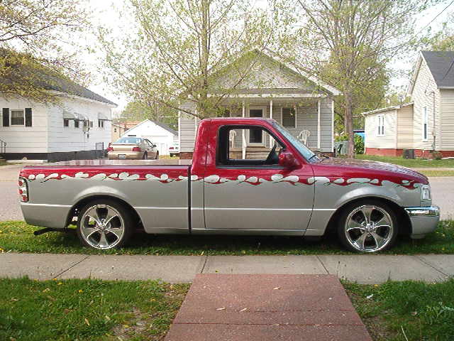 Shaved door handles, tailgate,embilems, steak pocket holes, Frenched in licenceplate, 2-tone candy paint