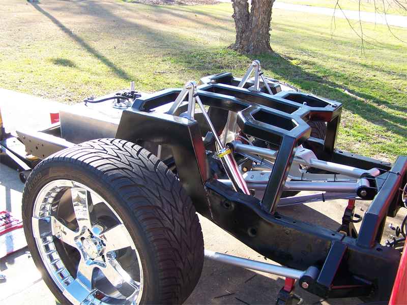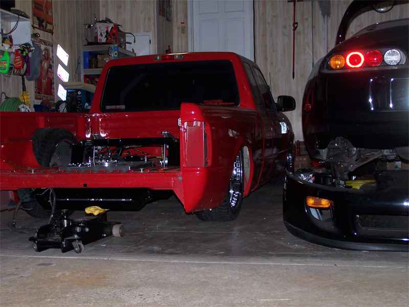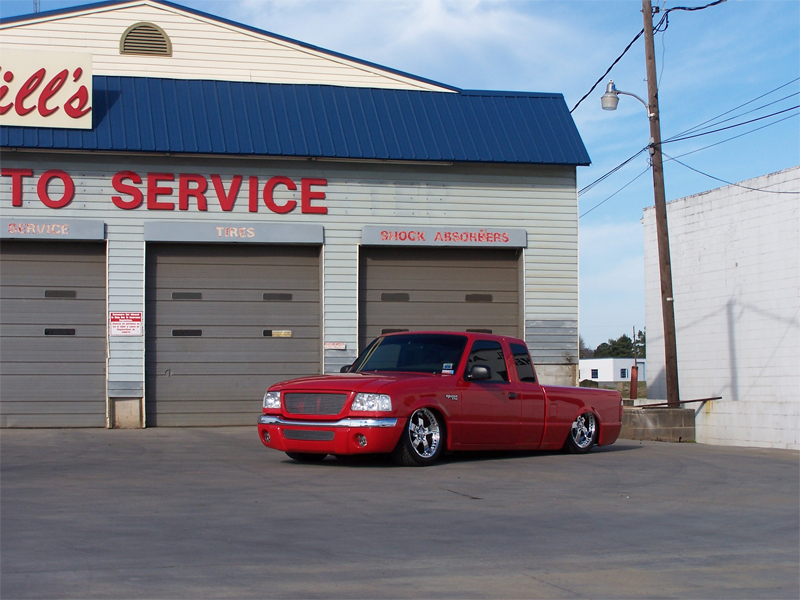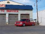 Slam RE-6's & RE-7's , djm arms, tri 4-link w/ bags on upper bars, 5" narrowed rear w/ mustang disc brakes, chrome Carrera/QA1 cantilevered rear shocks w/heims, GC 250 valves (1/2 fill, 3/8 dump), 1/2 line, color matched 8 gal tank, york 210 EDC