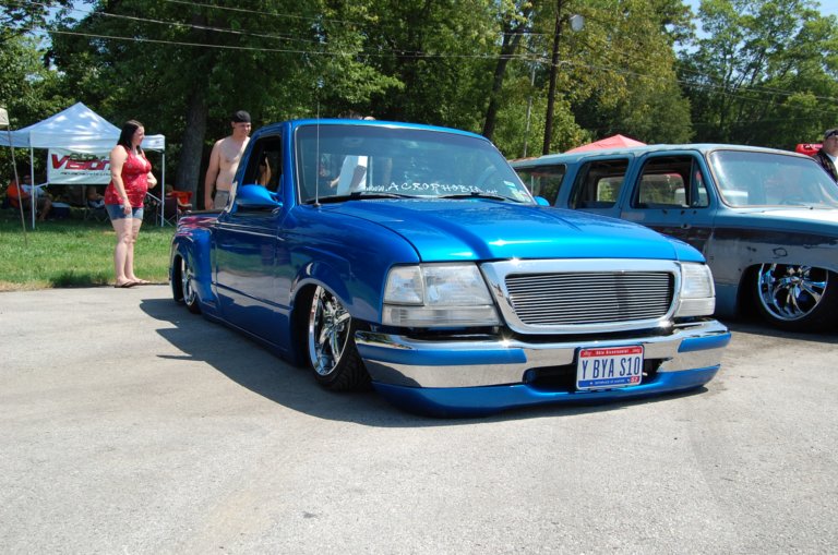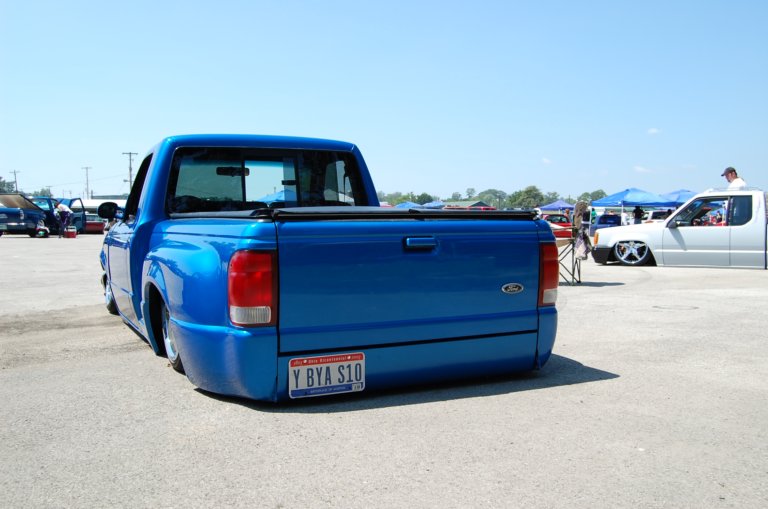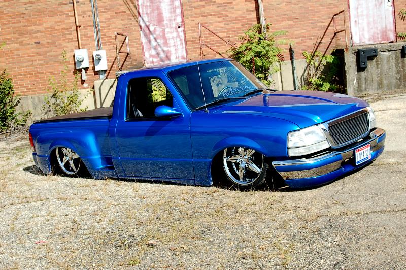 shaved third brake light, handles, locks, front emblems. Edge hood, color matched bumper pads and lower valance. Horribly ugly clear outs, and an incredibly mangled rollpan.
