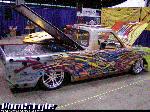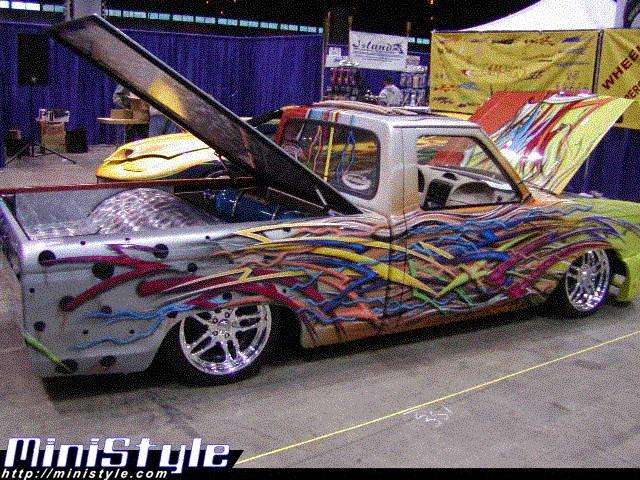 Shaved cowl and frontend off 2001 ranger rearend shaved,gas door,antenna,and tailgate handle.50 color abstract painted by customshop in ill.custom tonneau cover also made by cs.