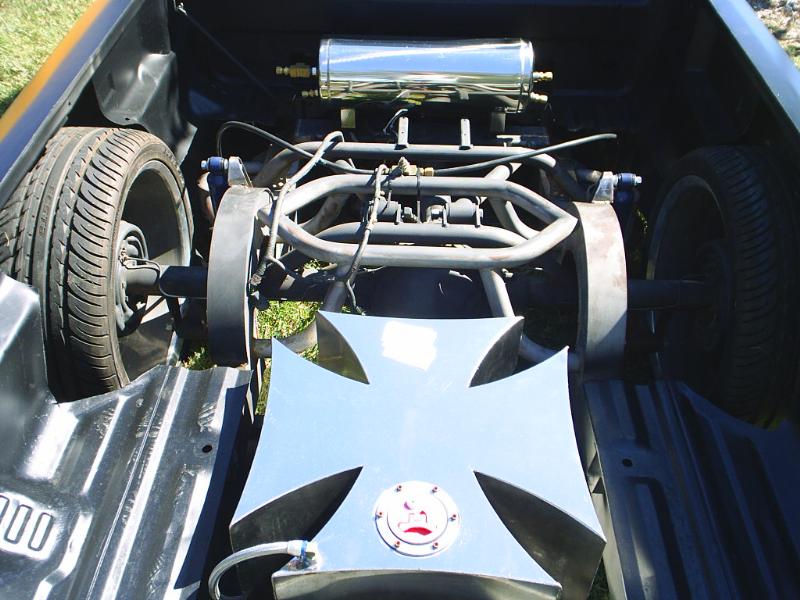 stock 2.3, 3rd shift kustoms one-off iron cross stainless fuel cell