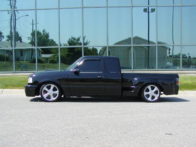 Painted side steps on bed, antenna base, Ranger emblems on fenders. Street Scens Cal-Vu Signal mirriors, Roll pan, shorty tenna, speed grills,