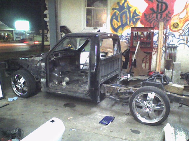 Body dropped w/ front and back. All 3/8s air. Wishbone in the rear. Bags on front bars. One viair 450.